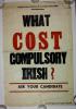 Poster, one of two. Issued by the Language Freedom Movement. (a) Text: 'What Cost Compulsory Irish?' Heading: 'Language Freedom Movement, 35 Lower Baggot Street, Dublin'. Note added by donor: 'Fo thoghacán Luimní 1968'. Poster has remains of another poster adhering to reverse.