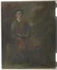 Portrait painting of Sir Shane Leslie, seated, wearing the first Gaelic League kilt. A saffron kilt, of a type first worn by Lord Ashbourne, the McGilly Bride, the second worn by Captain Cuffe, a relative of Lord Desart. Lesie had this third kilt made on the advice of Standish O'Grady, and wore it...