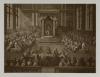 Photograph of an engraving or lithograph of the Elizabethan Parliament in Ireland, 16th century.