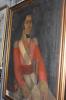 Painting, or portrait of an Officer of a Militia Regiment, early 19th century. In full dress uniform, with ceremonial sword. Scarlet coatee, with cream or buff collar and cuffs, gorget at neck inscribed 'GR' with a crown above. Gold wire epaulettes. White leather cross belt, with cross belt plate...