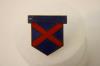 Fine Gael pin badge, c. 1935. Metal with blue enamel front, with a red cross through the centre of a blue shield under a bar bearing the letters FINE GAEL in gold.