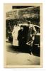 Photograph of Mrs Sarah Mellows in centre of three people standing in front of a car taken about 1925. Possibly taken in the U.S.A.