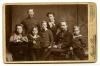 Studio photograph of the Mellows family showing a cousin in British uniform with Mrs. Sarah Mellows at back. From left in front Jennie, Freddie, Liam, Mr. William Joseph Mellows and Barney. Taken pre 1906. Photograph by the Lauder Brothers, Dublin.